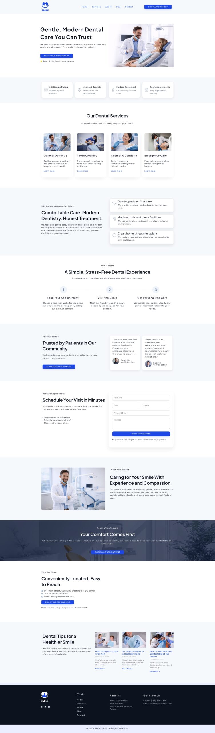 Focus: Appointment bookings, patient trust, mobile-friendly design