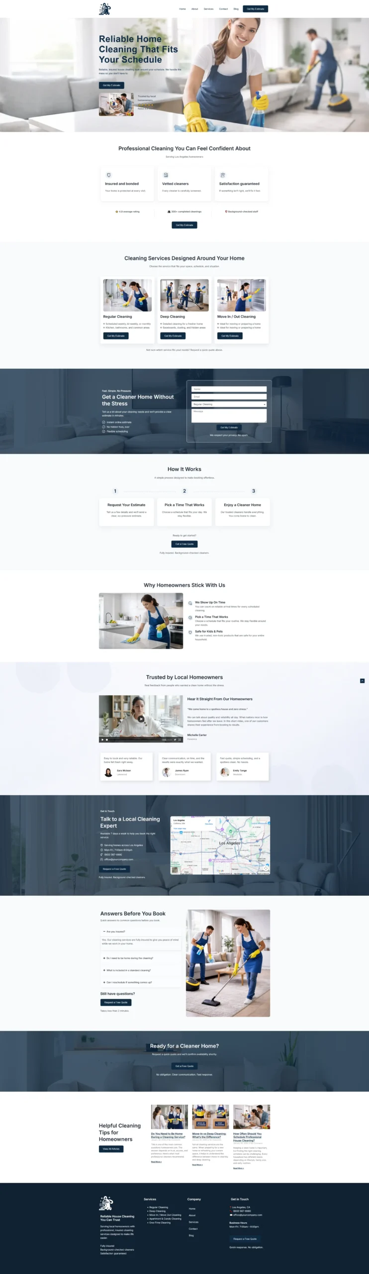 Designed to help local cleaning businesses build trust and encourage estimate requests through a clean, modern layout.